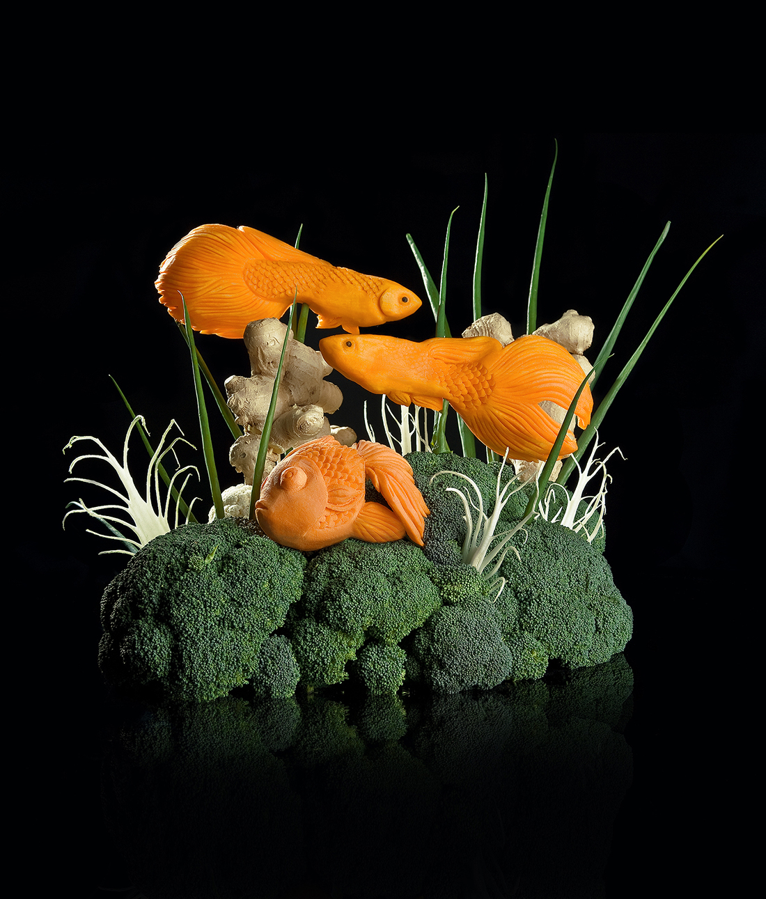 Fruit and vegetable carving turns fresh ingredients into detailed, artistic sculptures, highlighting the natural beauty of food with expert craftsmanship. Ideal for events, displays, and culinary presentations, these creations bring a distinctive and eye-catching touch to any occasion.